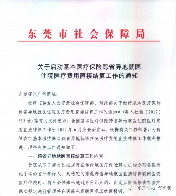 近日,广东省医疗保险跨省异地就医直接现场结算服务管理系统已在全省上线,东莞曙光广华医院属于跨省异地就医直接现场结算服务的定点医疗机构,从2018年5月16日起,省内、省外参保患者在我院住院可以享受非常便捷的跨省市异地就医直接现场结算报销的服务。