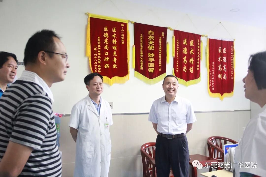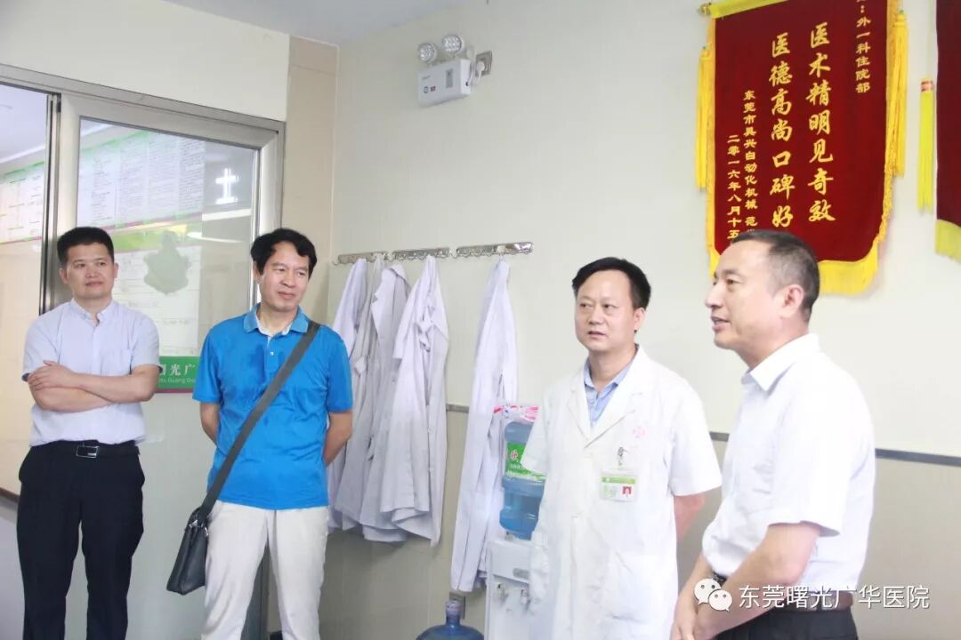 2018年07月25日下午16时,东莞康华医院副院长张中银及其脑卒中中心专家团队一行,专程来到东莞曙光广华医院,与我院陈亮祺院长等一起,为“国家脑卒中中心协作医院”揭牌。