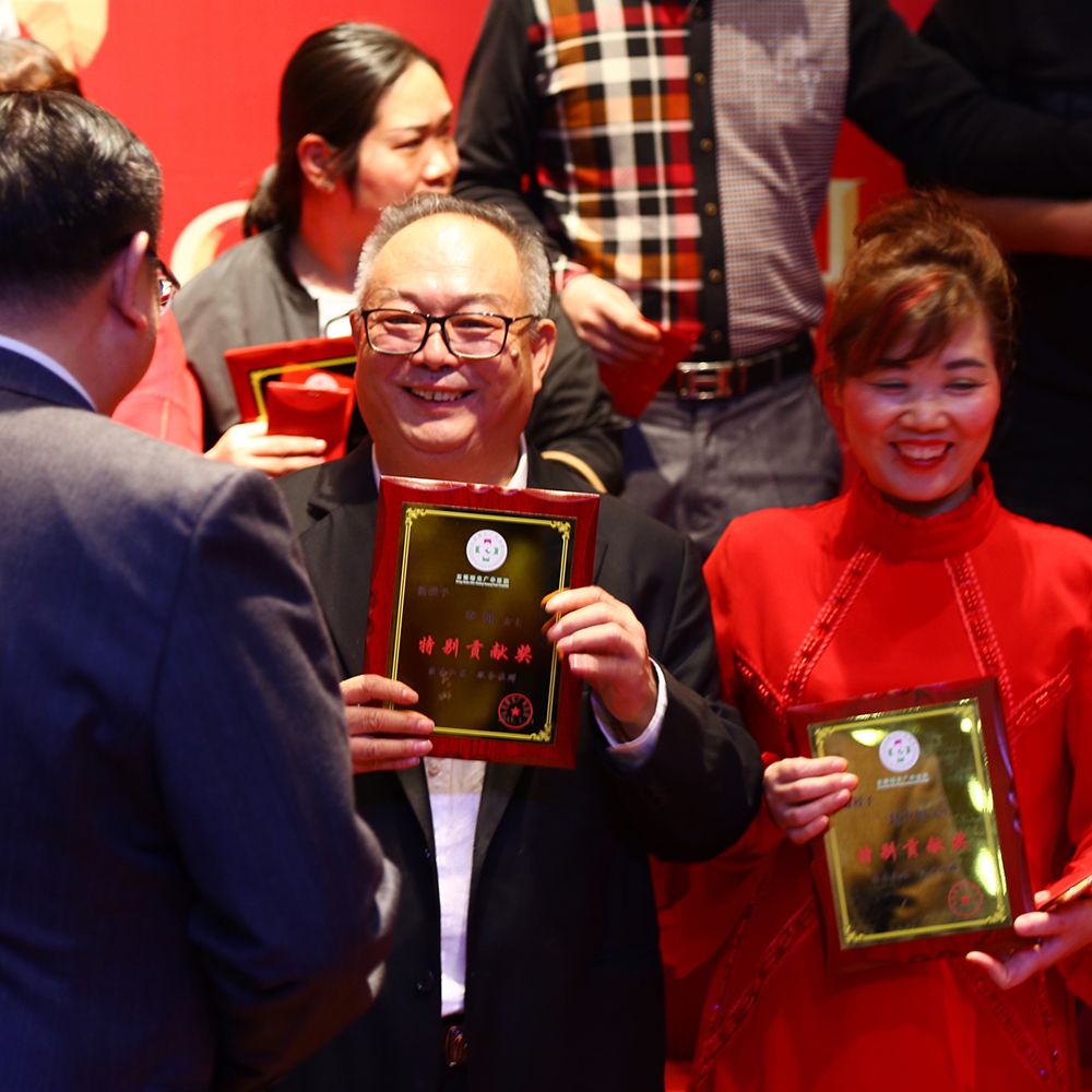 ▲董事长向15年及以上员工颁发“特别贡献奖”牌匾
